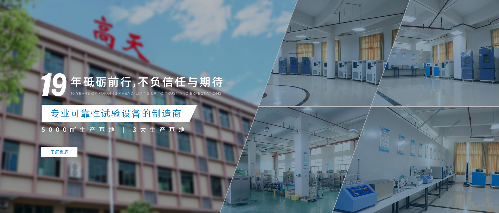 東莞市高天試驗(yàn)設(shè)備有限公司是一家可靠性試驗(yàn)設(shè)備的制造商,我們專注于可靠性試驗(yàn)已有19余年,在此期間,我們竭盡所能,努力為客戶提供完善的實(shí)驗(yàn)室規(guī)劃方案,匹配質(zhì)優(yōu)價(jià)廉的試驗(yàn)設(shè)備。高天擁有完整的研發(fā)團(tuán)隊(duì),其中有很多人都躋身試驗(yàn)設(shè)備行業(yè)多年,能為顧客提供完善的技術(shù)方案,以幫助廣大客戶在確保其產(chǎn)品品質(zhì)的前提下,有效降低經(jīng)營成本,提升經(jīng)營競爭優(yōu)勢。高天生產(chǎn)的設(shè)備種類眾多,同時(shí)擁有實(shí)用新型專利證書,銷售范圍覆蓋全國。公司自成立以來堅(jiān)決以精美的外觀設(shè)計(jì),認(rèn)真務(wù)實(shí)的工作精神,良好周到的后續(xù)服務(wù),贏得了客戶良好的口碑。我們將一如既往,堅(jiān)持以“誠信經(jīng)營”為...